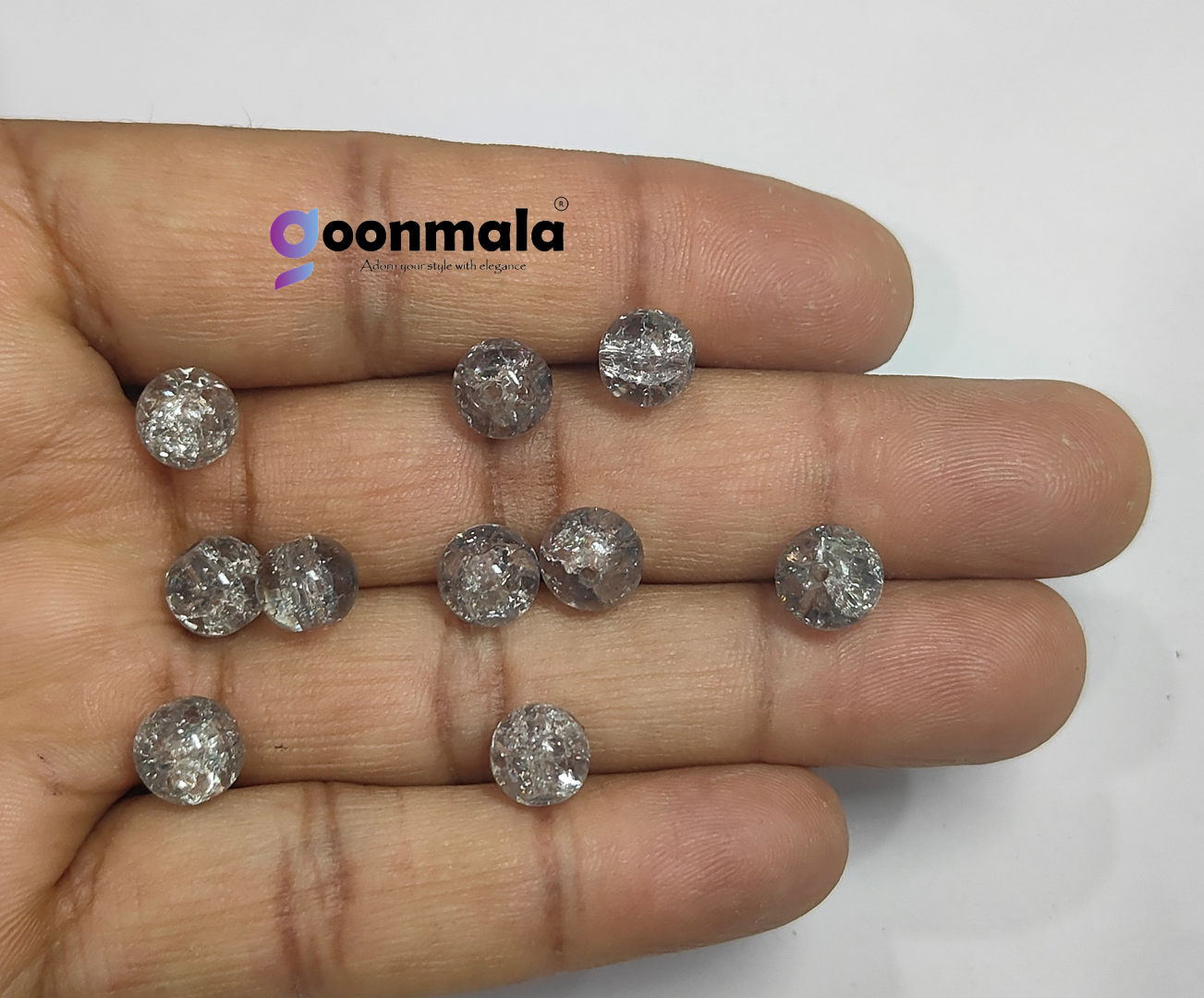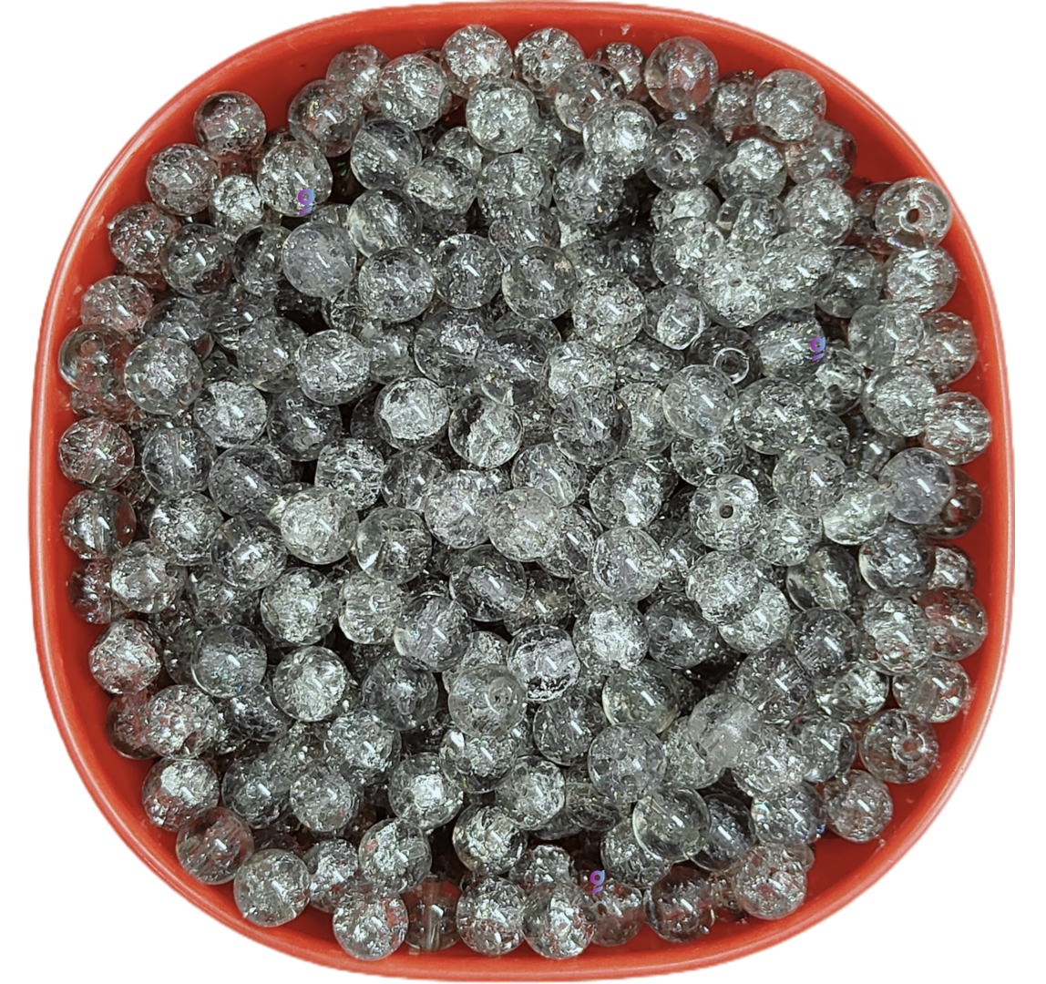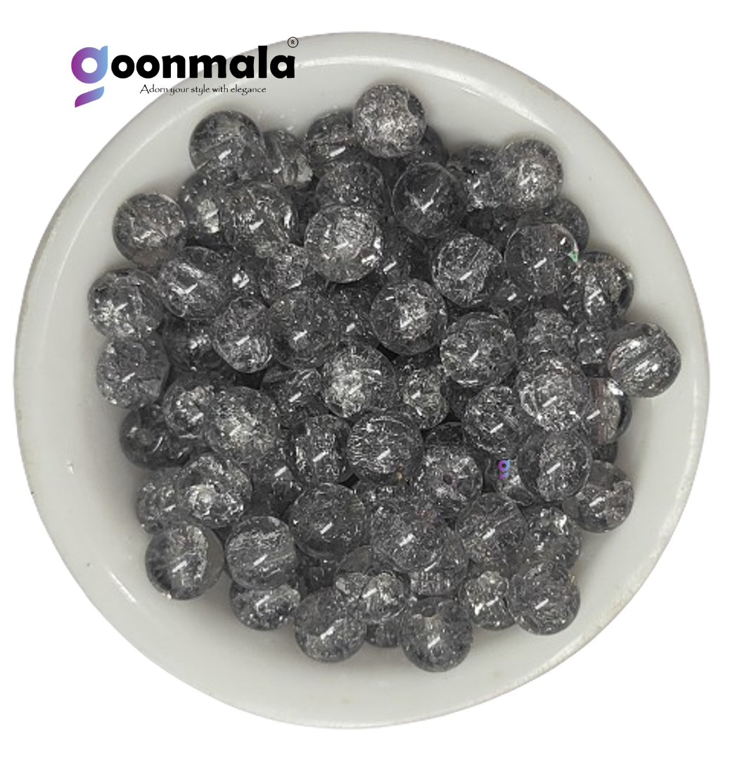Crackle glass beads for bracelet, Rakhi, Jewellery making 8mm Gray, 100 pieces