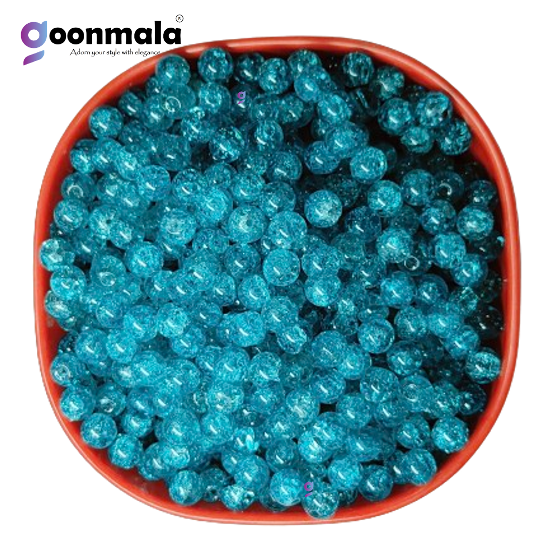 Crackle glass beads for bracelet, Rakhi, Jewellery making 8mm, Sky Blue 100 pieces