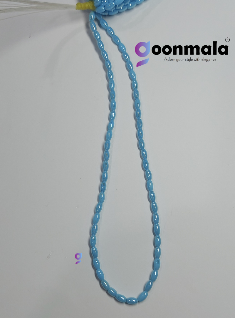 Goonmala Oval shape Glass beads for Jewellery Making, Beading, Art and Craft. Premium quality and light weight. 4x7mm oval Glass beads. One hole in each glass beads. Colour: Sky Blue, Total- 100 pieces