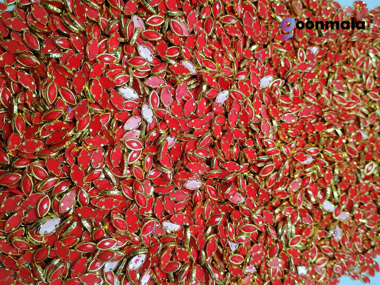 Kundan stone For Jewellery making, Bangles Embroidery Craft & Cloth Works, Plastic Eye Kundan 4x8mm, 500 pieces, Red