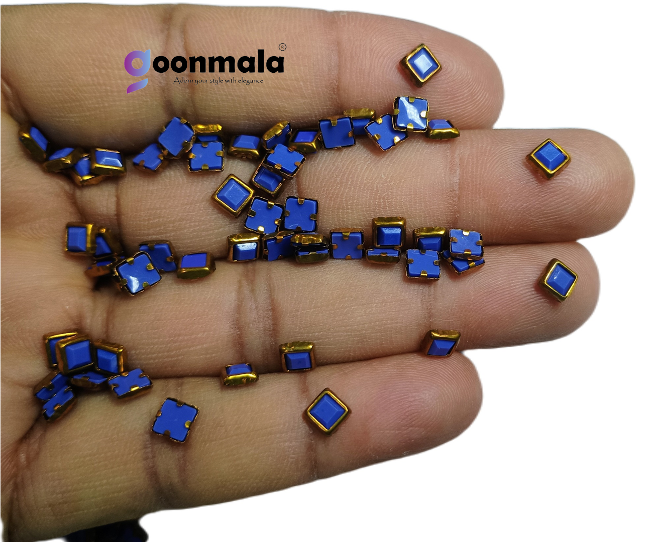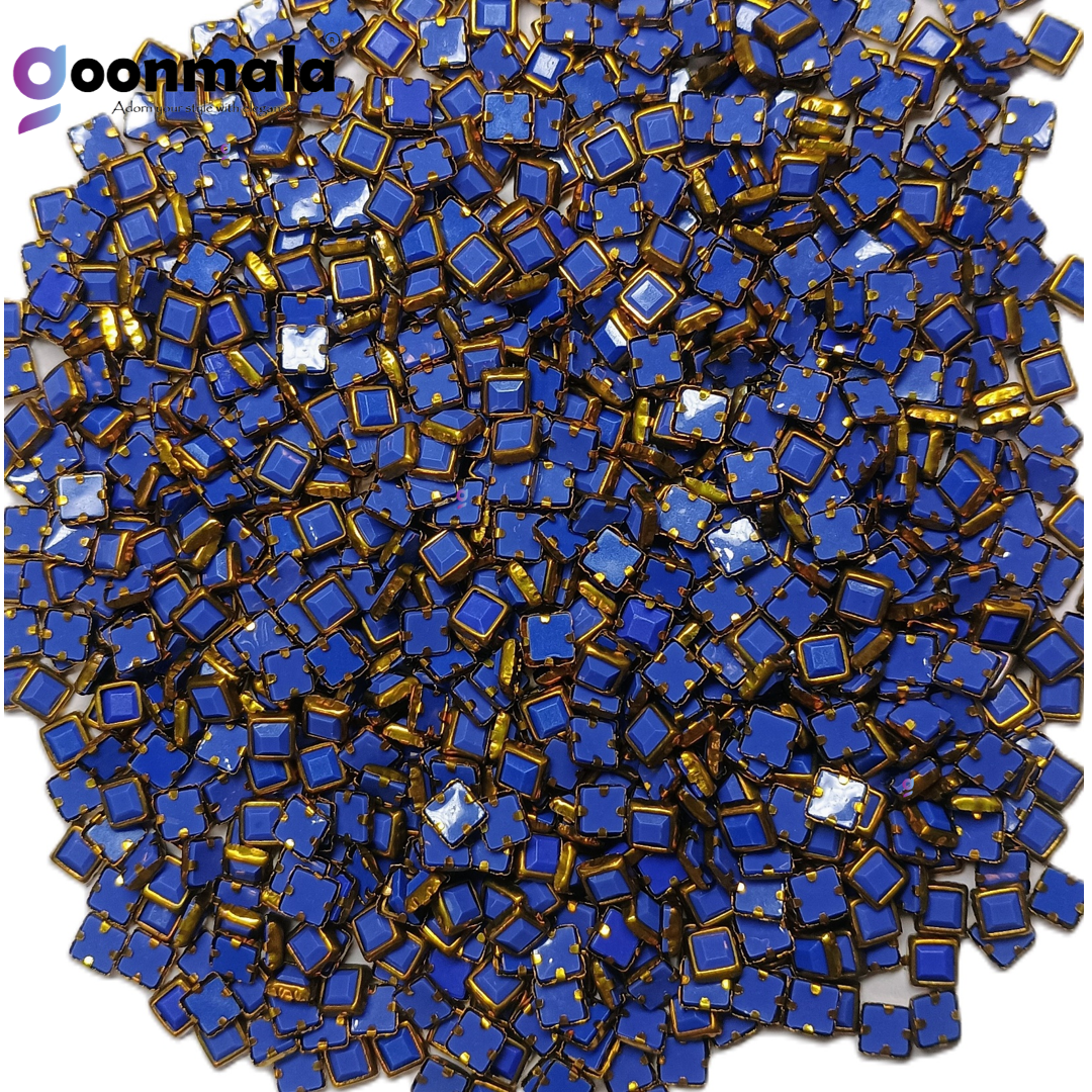 Goonmala Artificial Pestable Kundan, Use for Bangle, Bracelet, Necklace, Earrings, and Jewelry items, cloths craft etc. No hole & no hook, paste with febric glue /B6000/B7000/glue gun, Material: Glass stone kundan/beads with plated metal border, Package Includes: 500 Pieces, Sizes, 4x6mm Square, Color: Blue