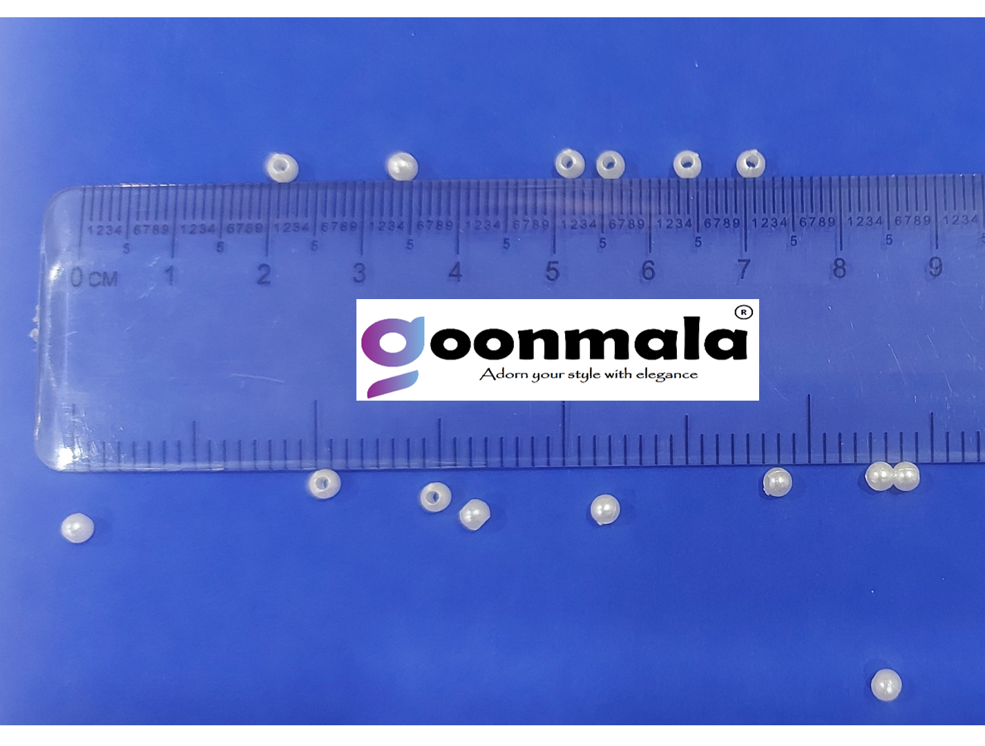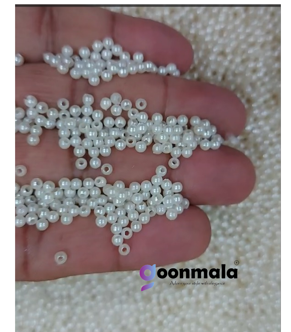 Off White pearl for different size for art and craft work, cloth design embroidery work, chain, jewellery work and other design work. Size & Qty – 2 mm 100gm. One hole in each pearl. Material – ABS plastic,
